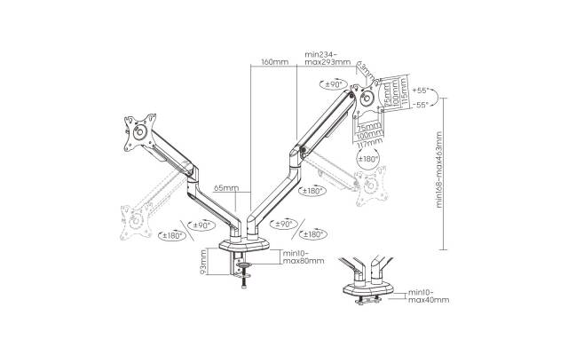 Angulo de giro: +90º / -90º