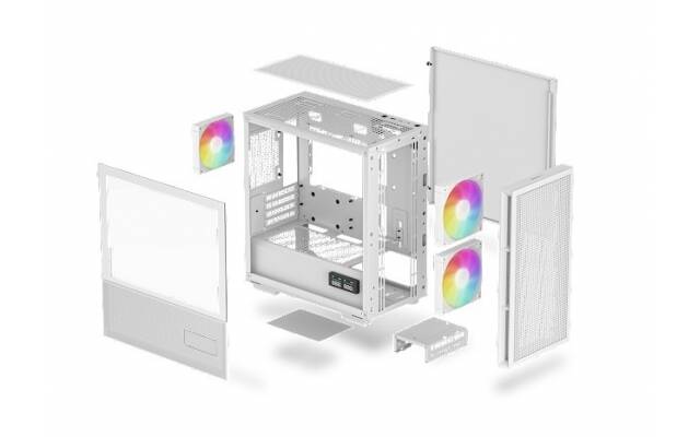 La nueva generación de gabinetes de flujo de aire de DeepCool ha llegado, y son realmente espectaculares. La CH360 DIGITAL WH es una caja mATX de nuevo diseño centrada en aumentar el flujo de aire en todo el chasis. Dos brillantes ventiladores ARGB de 140 mm habilitados para PWM se montan en el frontal del compartimento principal de color blanco puro, un panel lateral híbrido y una pantalla digital de doble estado diferencian a la CH360 DIGITAL WH de la competencia.