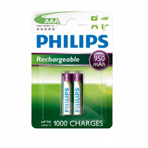 Pila recargable Philips de 950 mAhTamaño AAAModelo R03B2A95/97Blister individual de 2 unidades