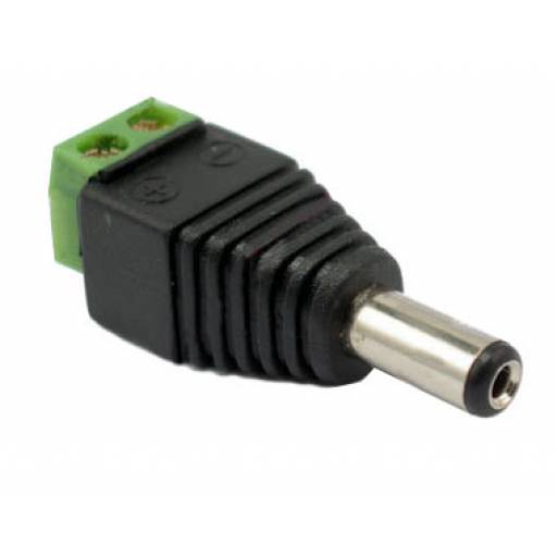 Conector de poder de 12V DC macho de 2.1 x 5.5mm. Ideal para cámaras de vigilancia (CCTV).Fácil de usar e instalar. Evita soldar cables!!!Da una apariencia profesional y simple al cableado de energía.