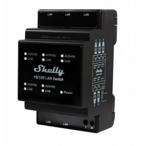 Switch LAN Shelly 5 puertos RJ-45 DIN